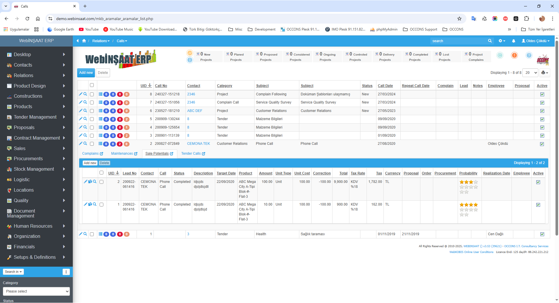 WebİNŞAAT ERP'nin Aramalar Yönetimi modülü, bu kaosu sona erdirmek ve satış/pazarlama ekibinizin her iletişimini değerli bir veriye dönüştürmek için tasarlandı.